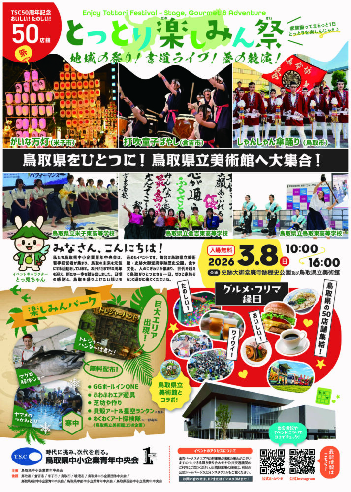 「とっとり楽しみん祭」が2026年3月8日鳥取県立美術館で開催されます!