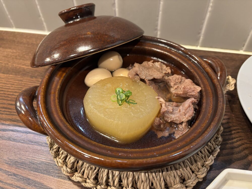 おでんでいただいたのは、だいこん、うずらたまご、和牛すじ。